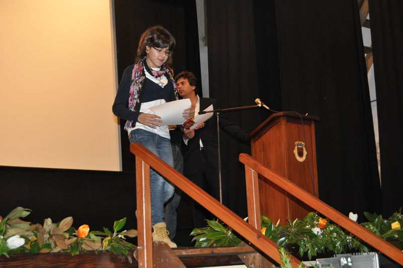 | A Catarina subiu ao palco do Cine-teatro para receber o Certificado de Participação |
