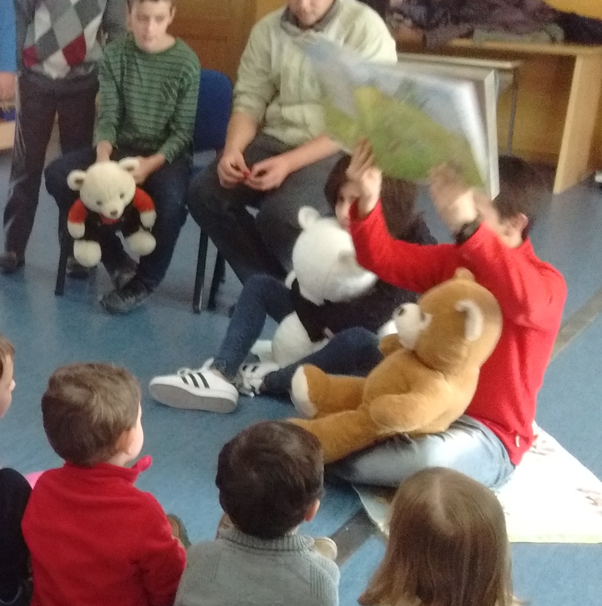 Neste Dia Internacional da Biblioteca Escolar os alunos do 6ºA brindaram os pequenitos do ensino pré-escolar com um momento mágico, conduzindo-os na aventura da caça ao urso. Um enorme e fofo urso de peluche que dormia na sua caverna!